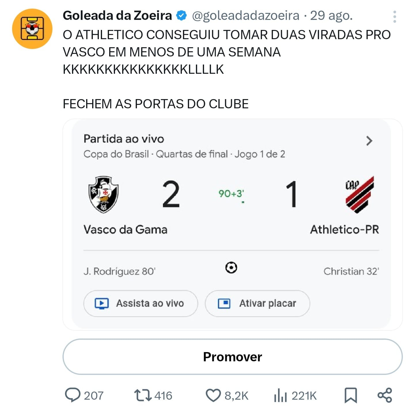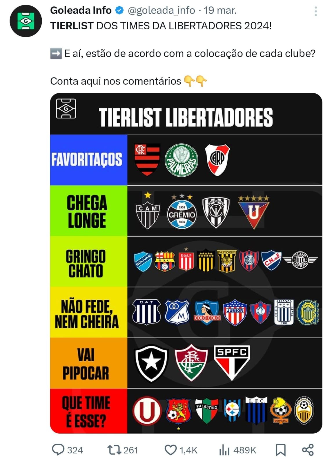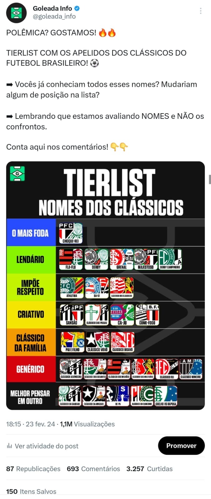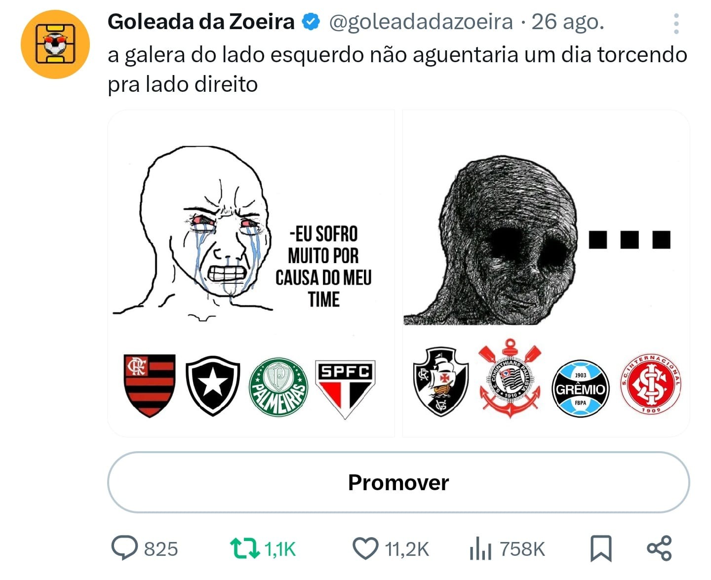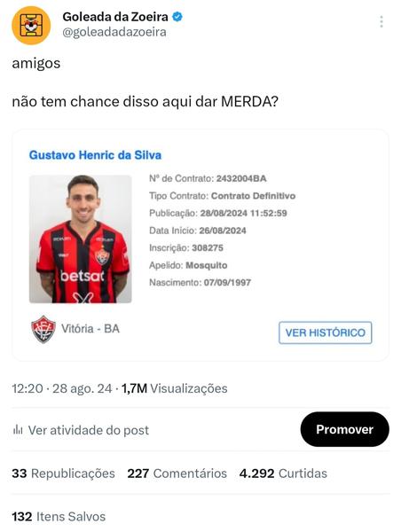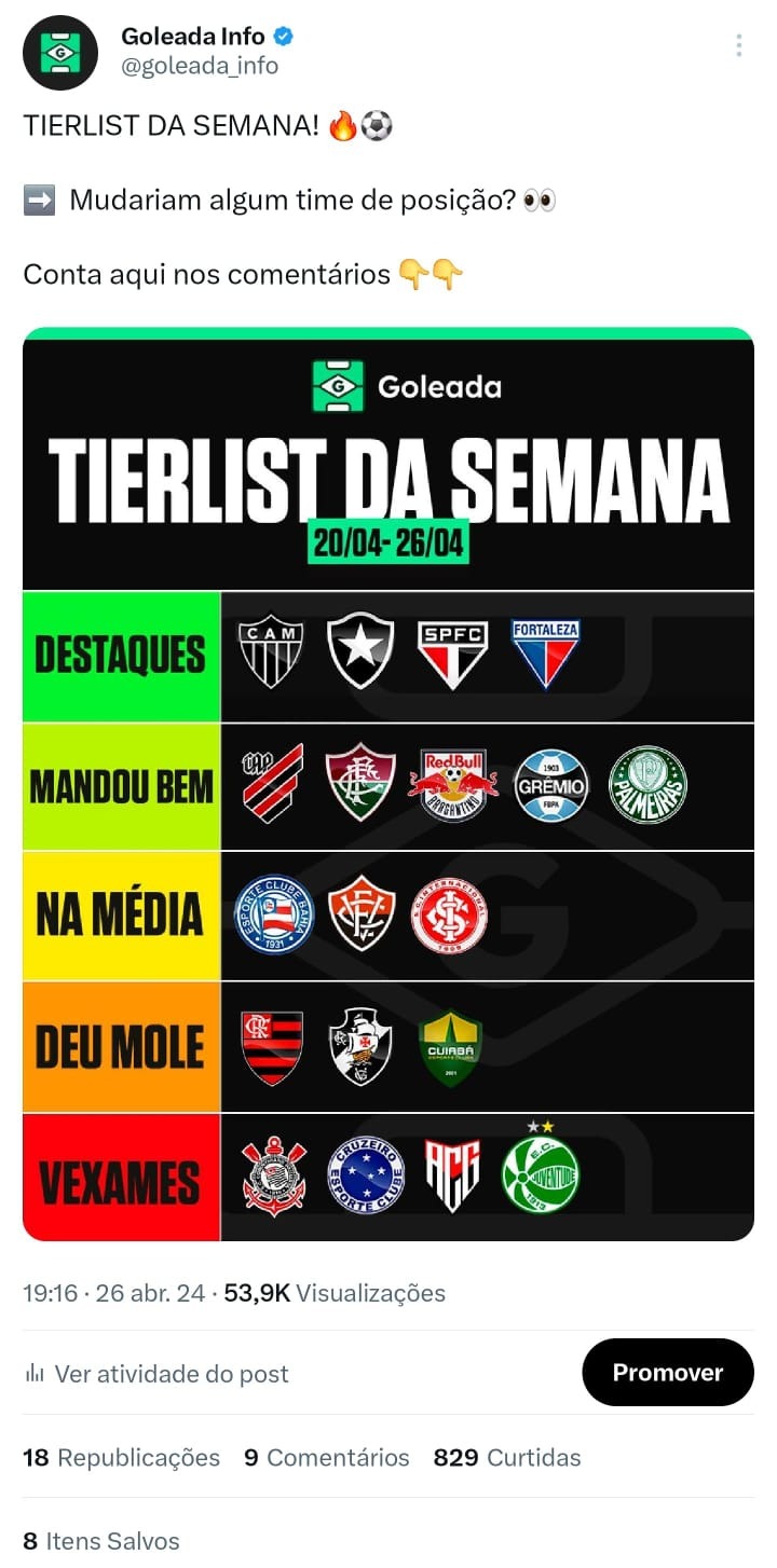 Na última demonstração sobre o X (antigo Twitter), eu apresento alguns posts do Goleada da Zoeira. No caso, essa é uma página de esporte para brincar com qualquer tipo de torcedor, apaixonado ou não por futebol.