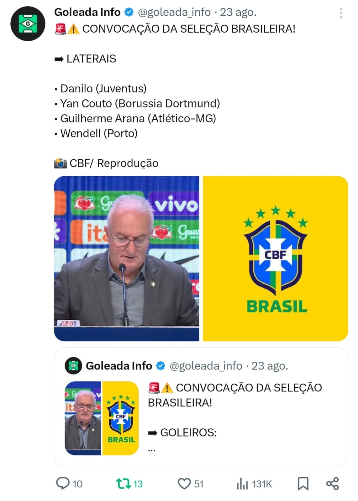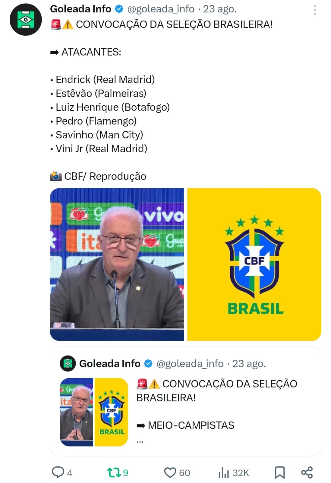 Neste post informativo sobre a Seleção Brasileira, diferente dos concorrentes, eu resolvi mudar a técnica de publicação da convocação e, ao invés de fazer apenas uma lista dos convocados, eu acabei dividindo os nomes por posições e embedando um no outro. Dessa forma, o resultado final chegou próximo das 800 mil impressões, superando diversas páginas maiores, além de empresas da mídia tradicional.
