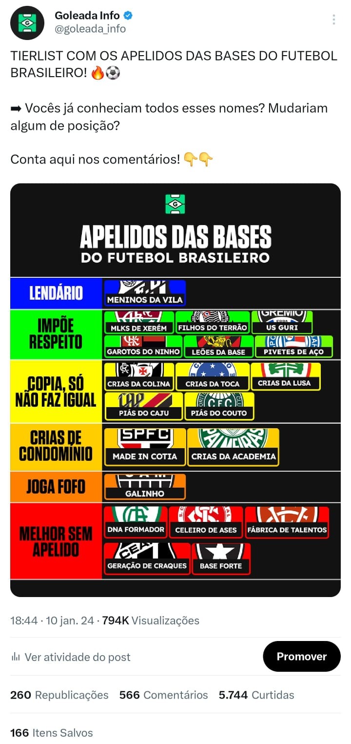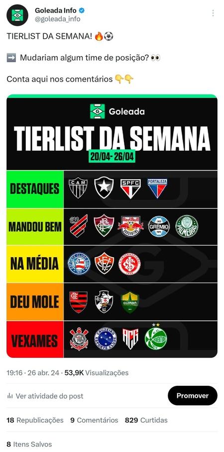 Na terceira demonstração, foi utilizado apenas demonstrações de post de engajamento em uma página jornalística. O principal foco é mexer com os consumidores dos conteúdos sem atacar sua paixão. Além disso, utilizei como exemplo o post da "tierlist da semana" para apresentar um engajamento fixo que o resultado dos posts vão variando de acordo com o desempenho de cada time.